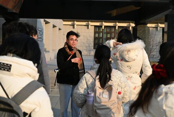 7日下午,访学团抵达北京。甫一踏上这片土地,大家就能感受到古韵与新潮在此共生。下午5时,同学们由西门进入颐和园。“一园竹树绕泉石,四季冬春夏复秋。”纵使寒风凛冽,园内依旧水禽纷飞,鸟鸣清脆。转至玉带桥,同学们不禁驻足凝视,桥体曲线优美,宛若玉带,正如杜牧所云:“长桥卧波,未云何龙?”行至豳风桥,游园之旅也接近尾声。豳风桥,桥名源自《诗经》中反映西周农耕劳作的篇章,从桥上看对岸的佛香阁,宛若画中取景。走下豳风桥,访学团结束了此次颐和园之行。在远山清水间,大家欣赏到自然风光之美;在雕栏楼台中,大家更能体悟到朱颜已改的历史沧桑感。